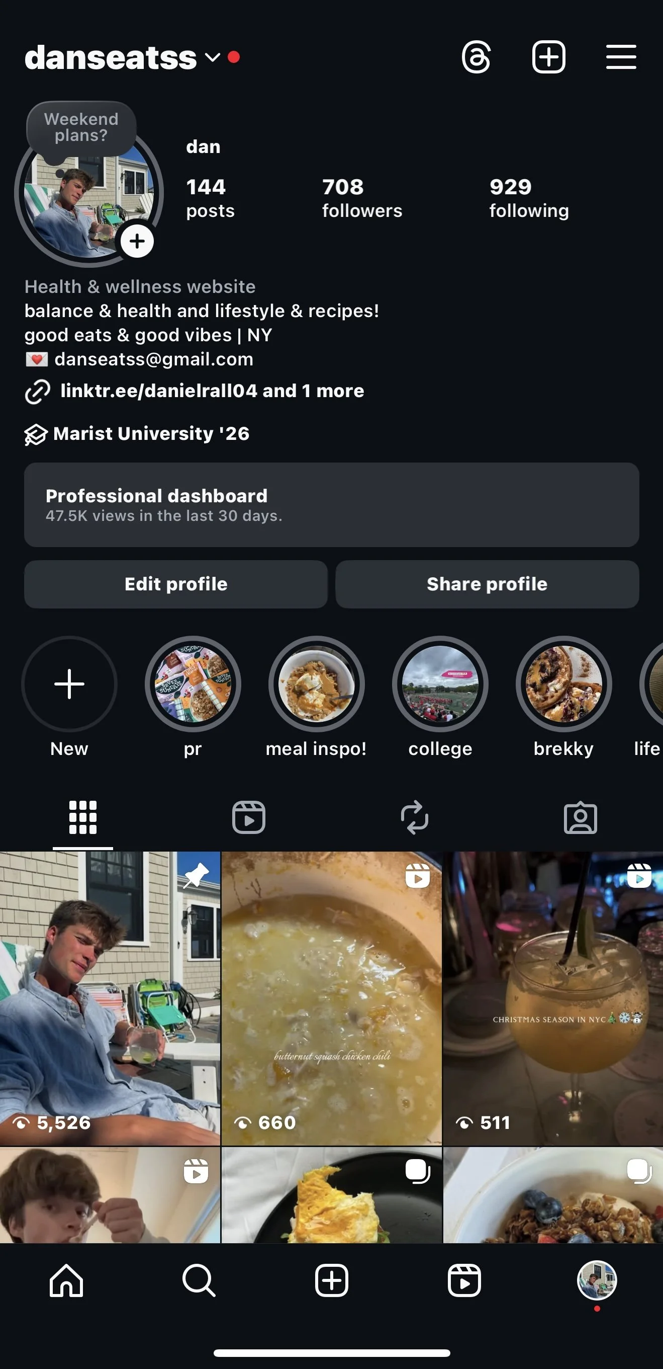 Built and grew a food-focused Instagram page to 700+ engaged followers with consistent growth through reels, photography, and storytelling. Achieved high reach and views on reels, generating positive feedback from the community. Collaborated with local restaurants and brands to create engaging promotional content, highlighting unique food experiences while driving visibility for partners. Developed strong relationships through brand collaborations and cross-promotions, establishing Dan’s Eats as a trusted and fun voice in the foodie space.